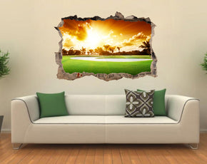 Golf Course Sunset 3D Smashed Broken Decal Wall Sticker