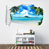 Exotic Tropical Beach 3D Torn Paper Hole Ripped Effect Decal Wall Sticker