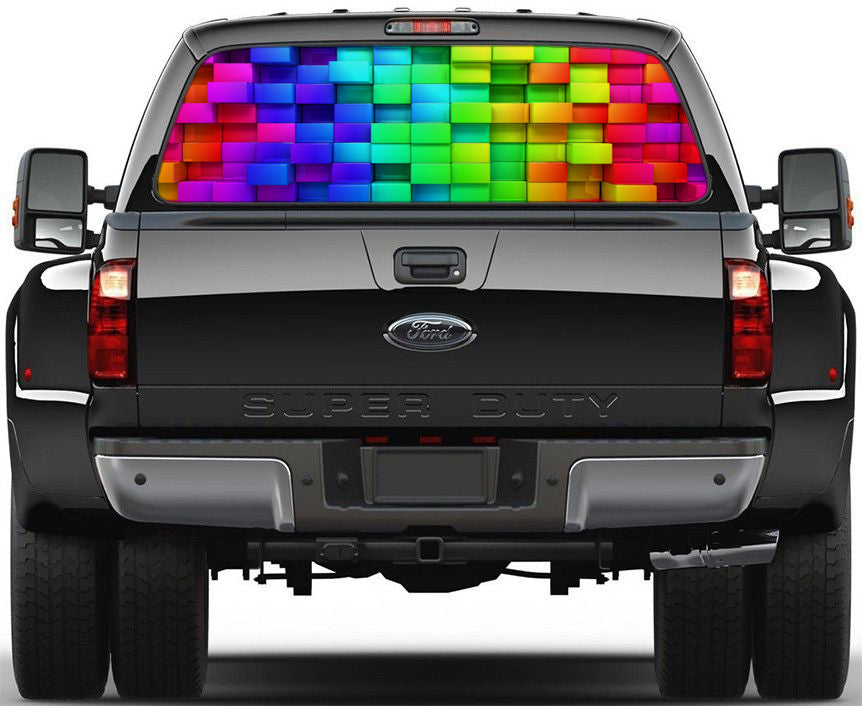 Colorful Blocks Car Rear Window See-Through Net Decal