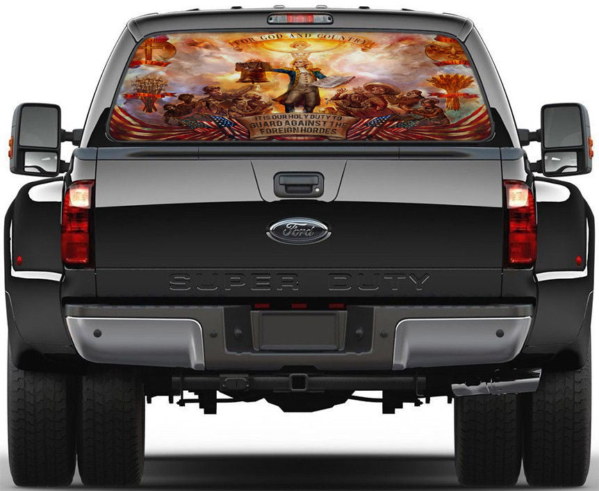 For God & Country Liberty Washington Car Rear Window See-Through Net Decal