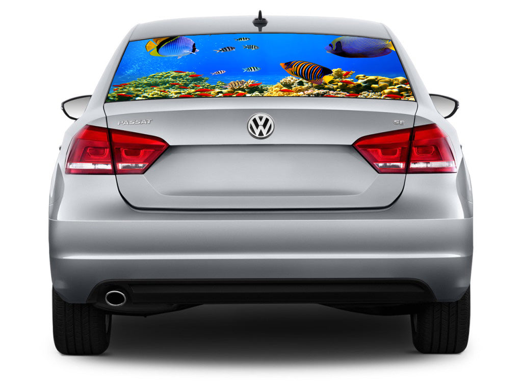 Underwater Coral Reef Car Rear Window See-Through Net Decal