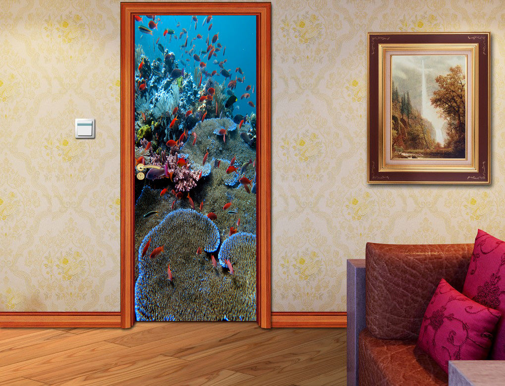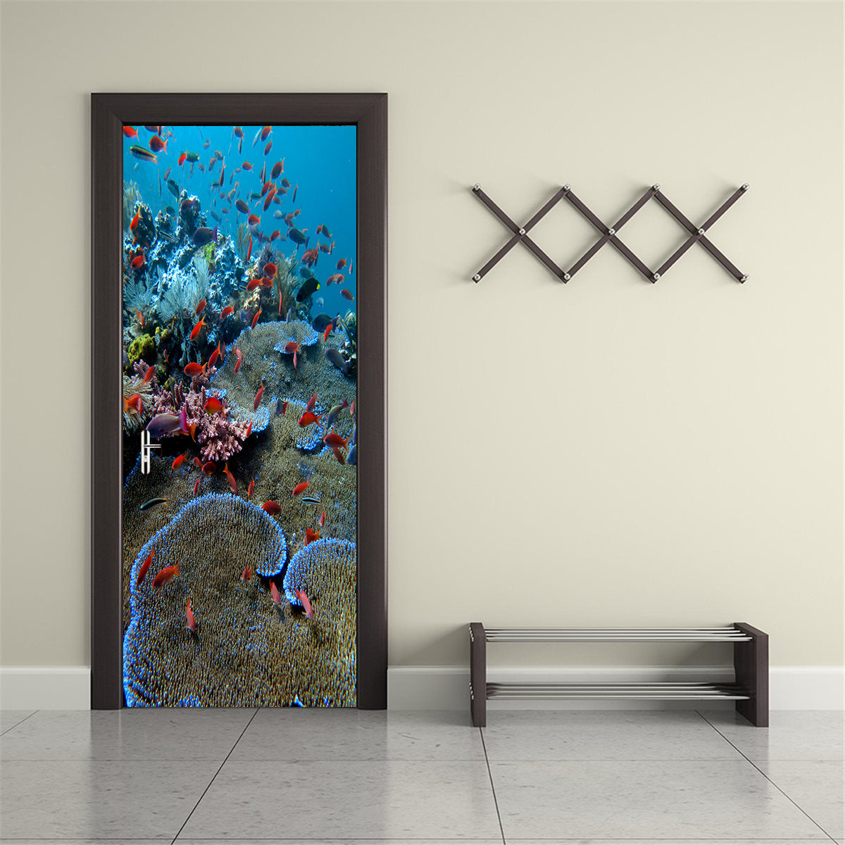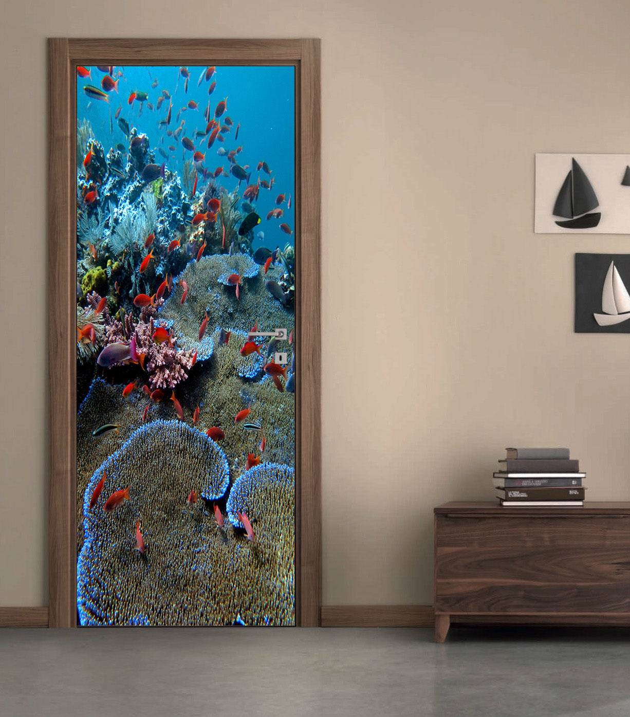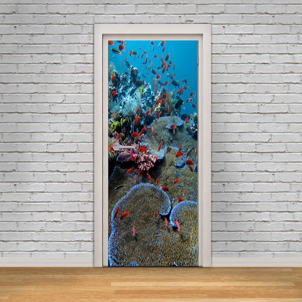 Coral Reef & Fish DIY DOOR WRAP Decal Removable Sticker D236