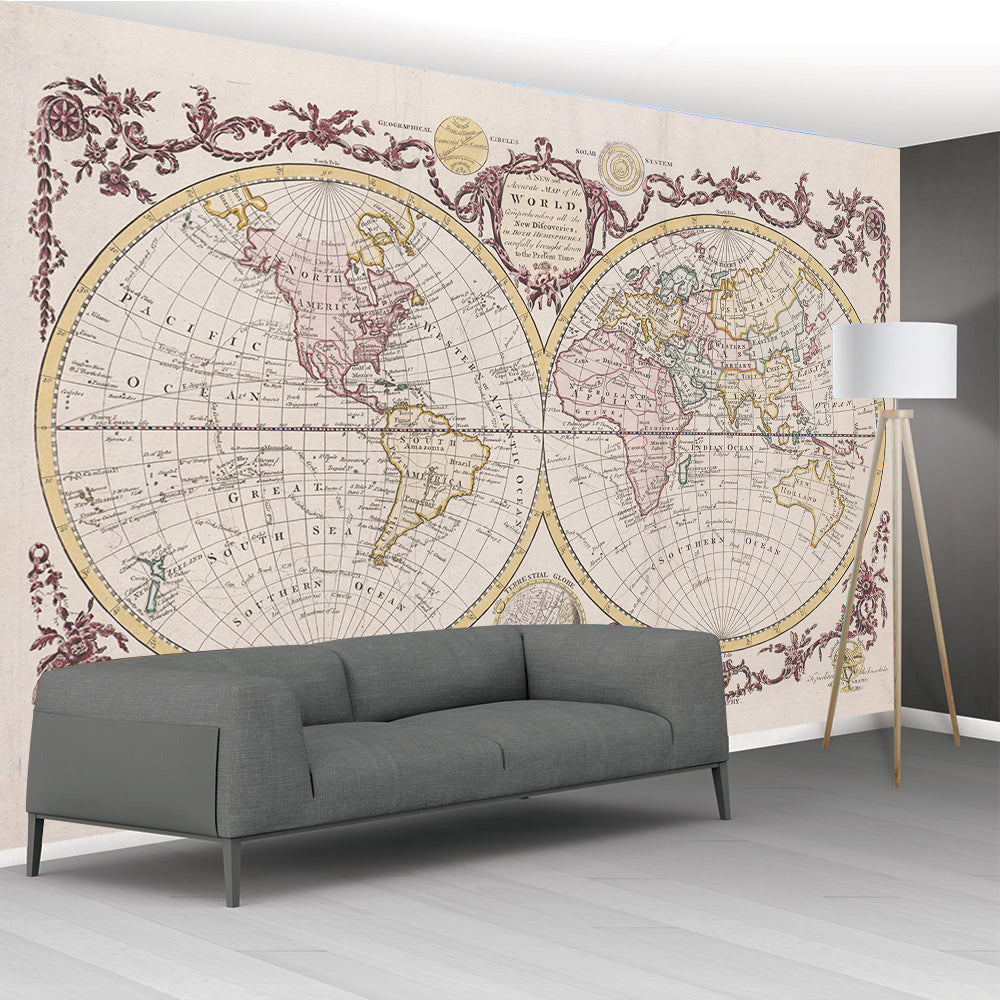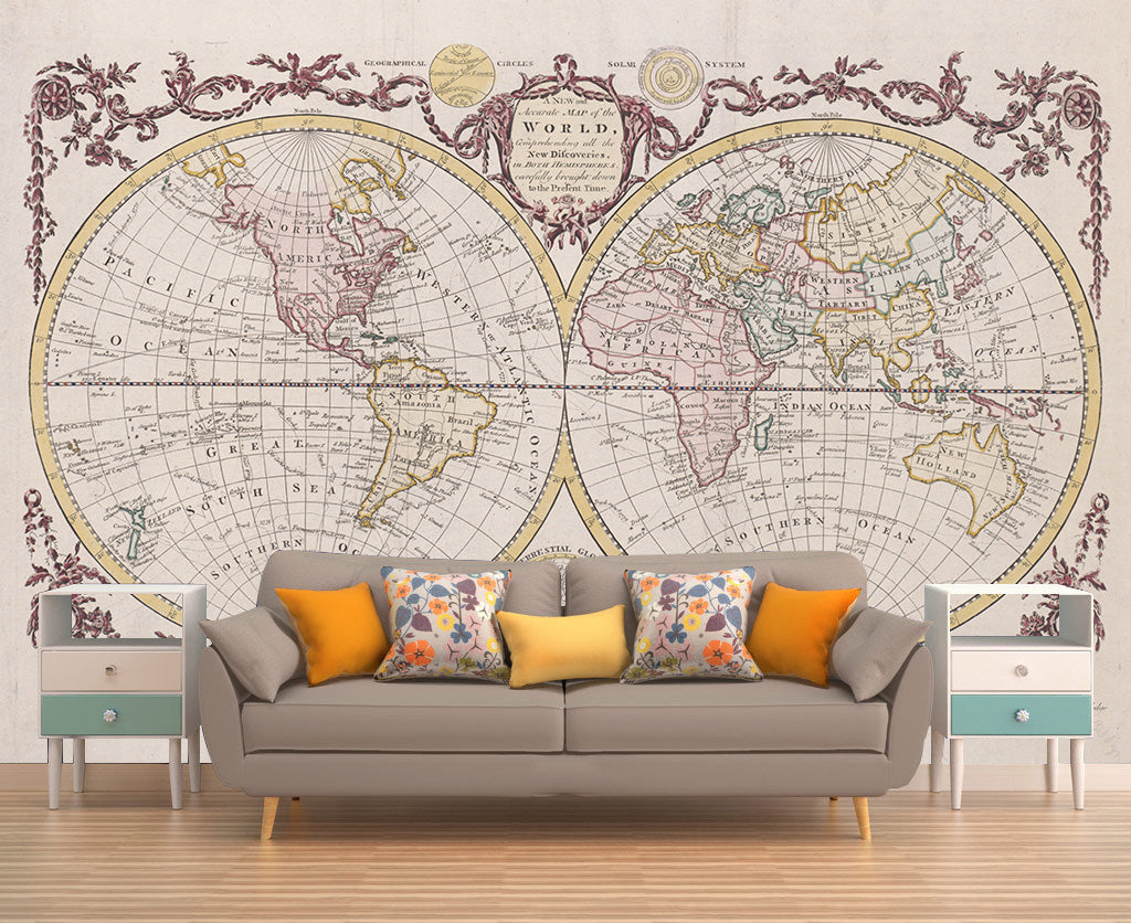 Ancient World Map Woven Self-Adhesive Removable Wallpaper Modern Mural M02