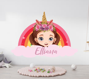 Girls Unicorn & Rainbow Personalized Decals Wall Sticker Decor Art Mural Kids Children Room Mural E81
