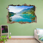 Foggy Lake Trees 3D Smashed Broken Decal Wall Sticker J414