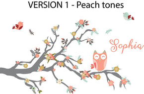Kids Tree Branch and Owl Personalized Custom Name Wall Sticker Decal WC154