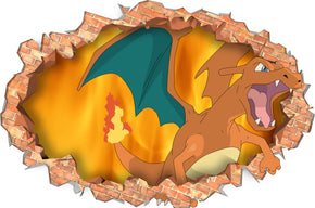 Charizard Pokemon Wall Sticker 3D Brick Wall Smashed Hole Effect Decal