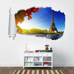 Dolphin Sunset 3D Torn Paper Hole Ripped Effect Decal Wall Sticker