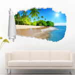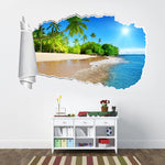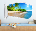 Exotic Palm Beach 3D Torn Paper Hole Ripped Effect Decal Wall Sticker