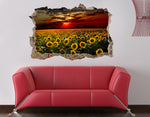 Sunflower Field 3D Smashed Broken Decal Wall Sticker
