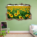 Sunflower Field Sunset 3D Smashed Broken Decal Wall Sticker