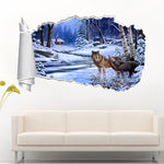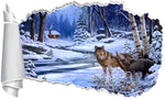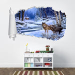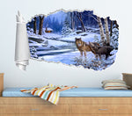 Wolves In Snow 3D Torn Paper Hole Ripped Effect Decal Wall Sticker