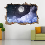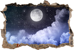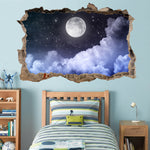 Full Moon Stary Night 3D Smashed Broken Decal Wall Sticker H168
