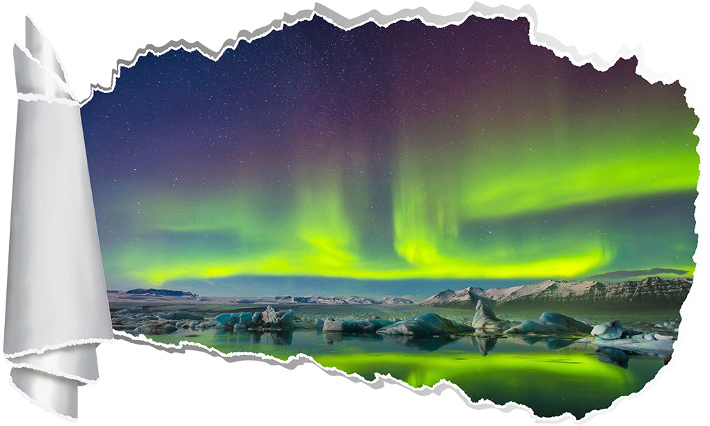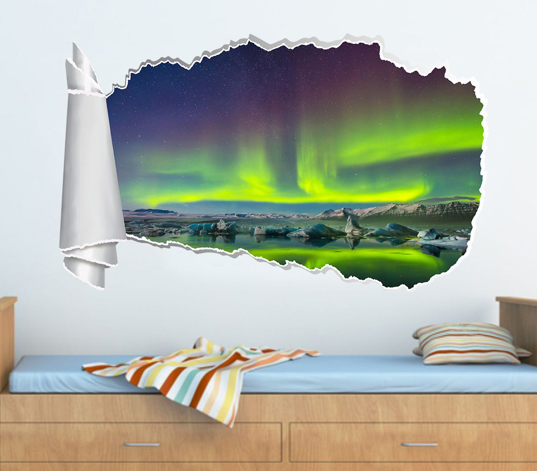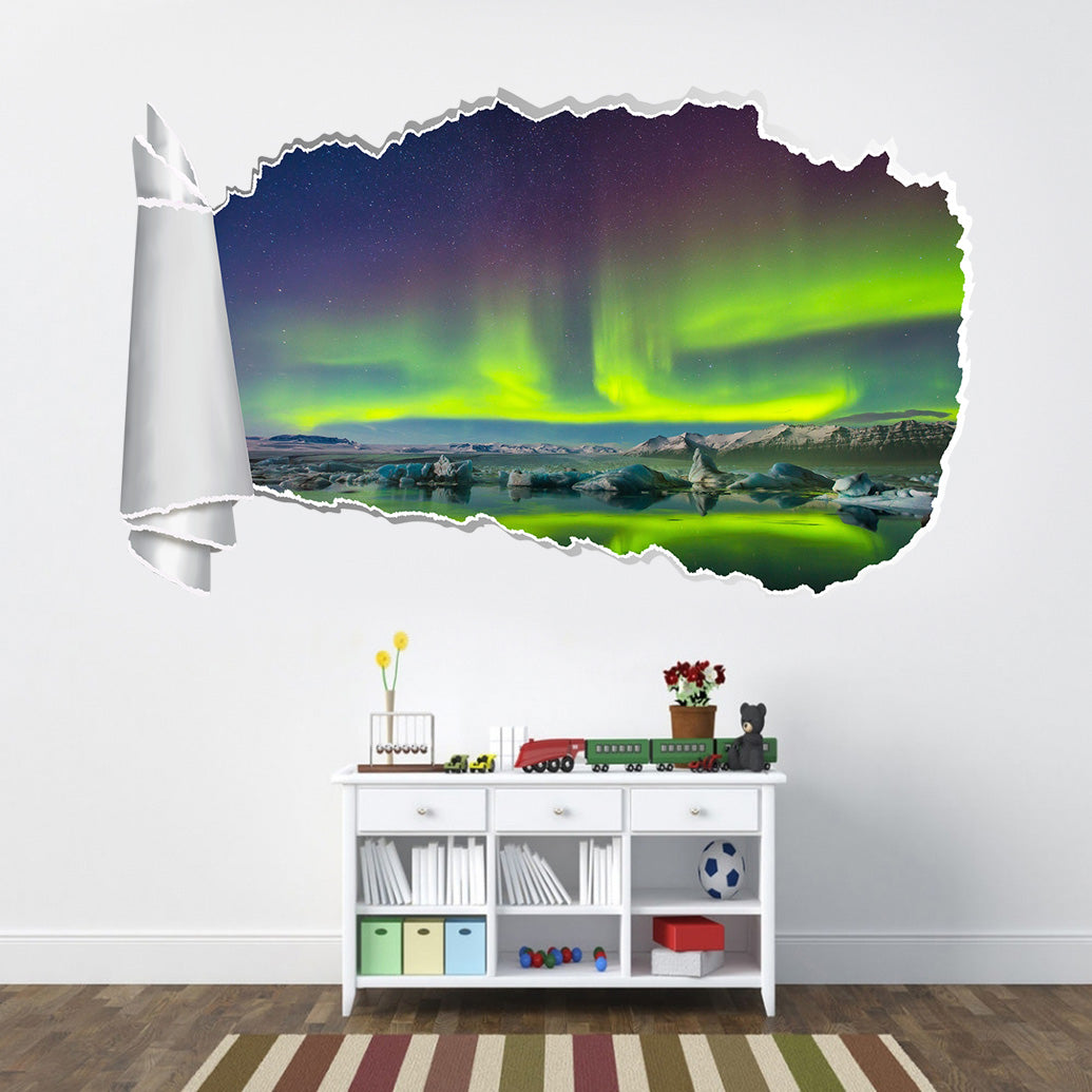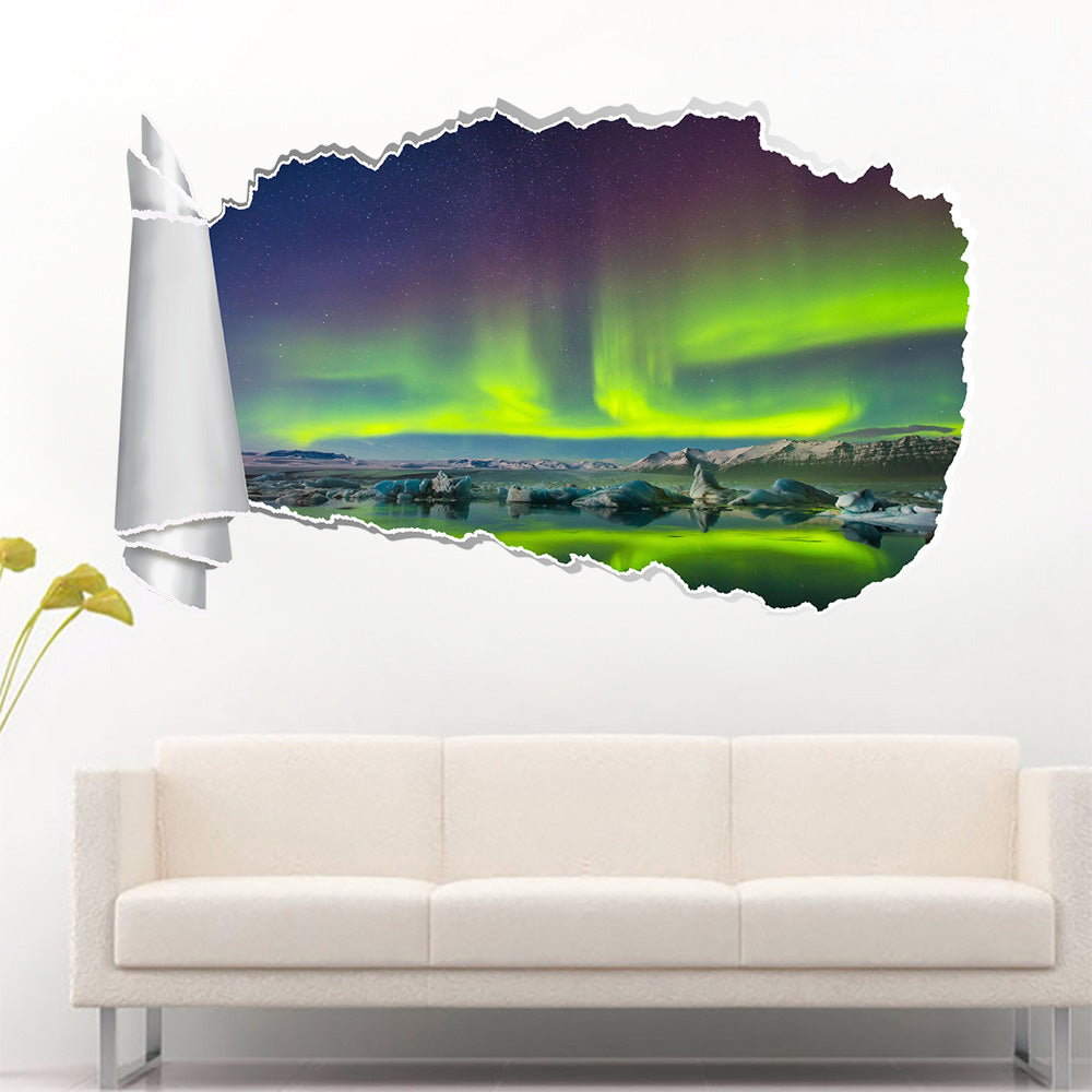 Aurora Borealis Sky Light 3D Torn Paper Hole Ripped Effect Decal Wall Sticker