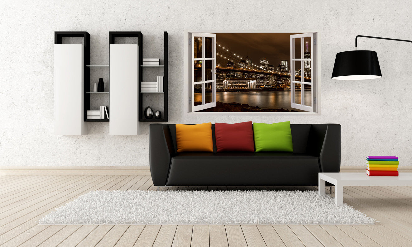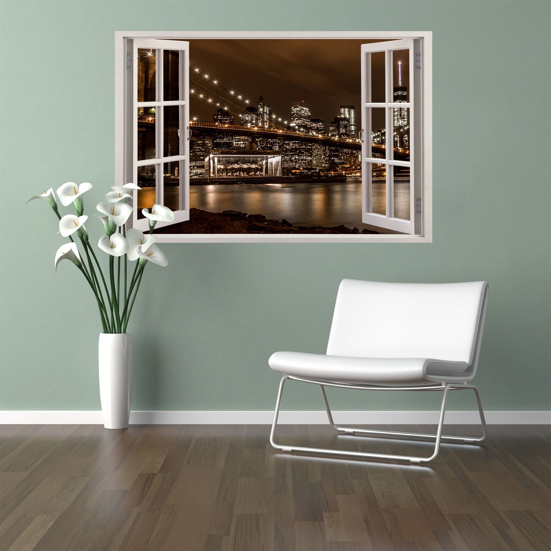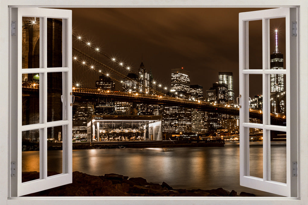 Brooklyn Bridge New York Night 3D Window Wall Sticker Decal