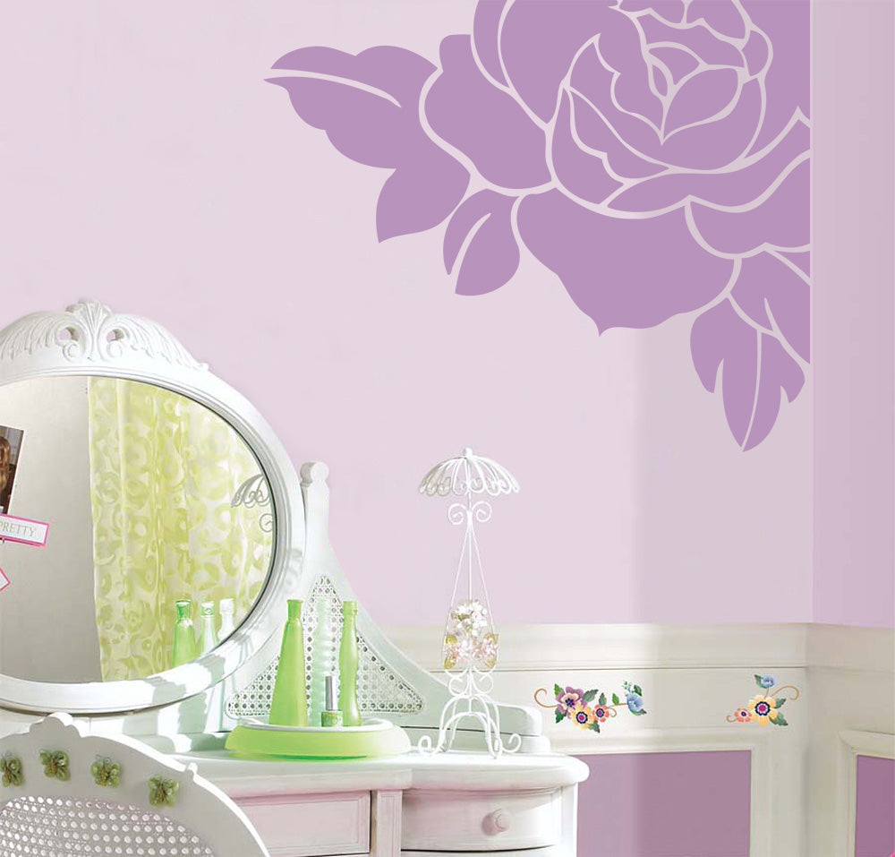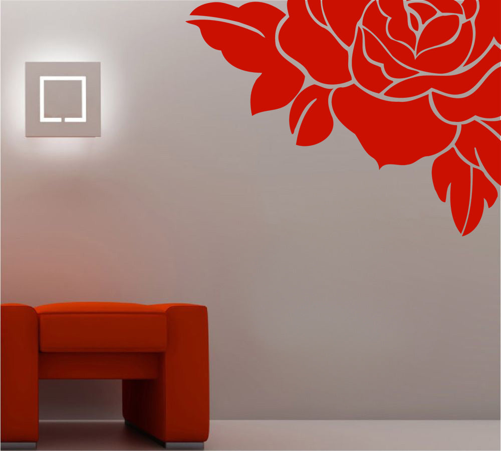 CORNER ROSE Wall Sticker Decal Stencil Silhouette ST52
