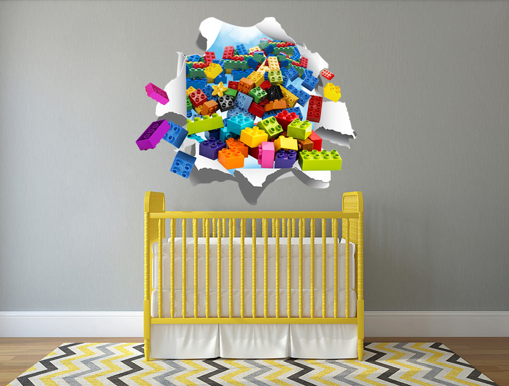 Lego Bricks Explosion Torn Paper Effect Wall Sticker Decal WC218
