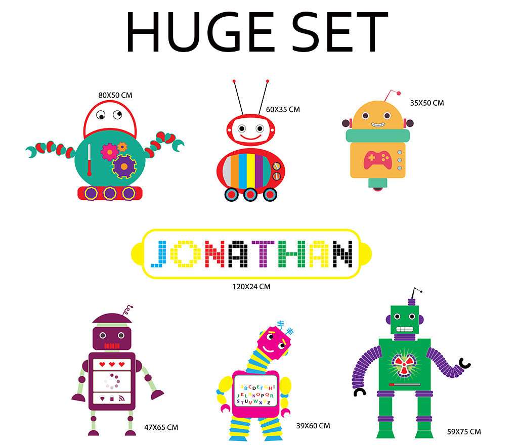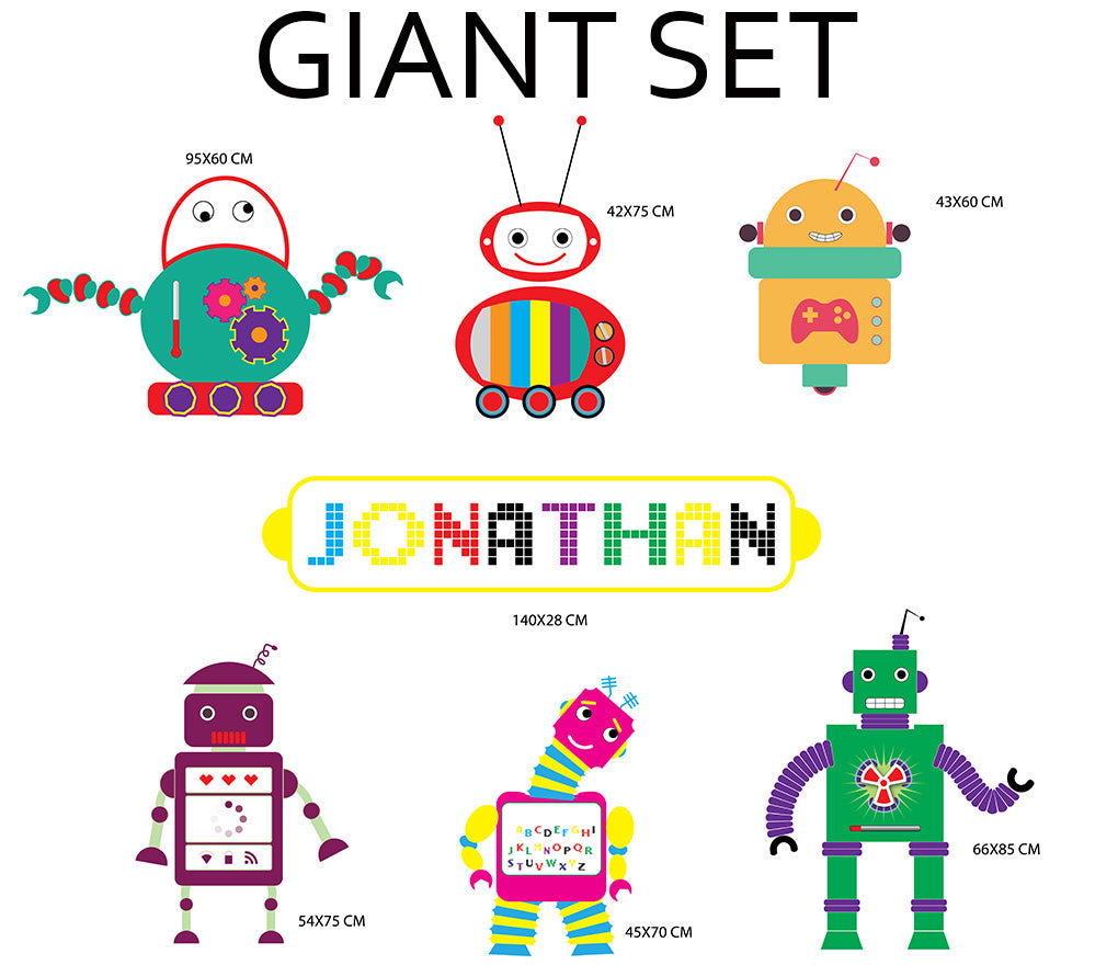 Kids Robots Personalized Custom Name Wall Sticker Decal WC103
