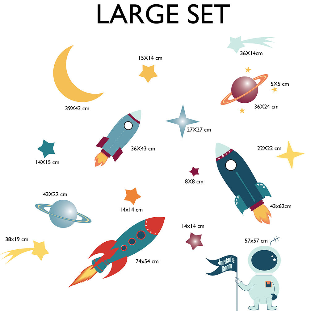 Rockets & Planets Personalized Custom Name Wall Sticker Decal WC110