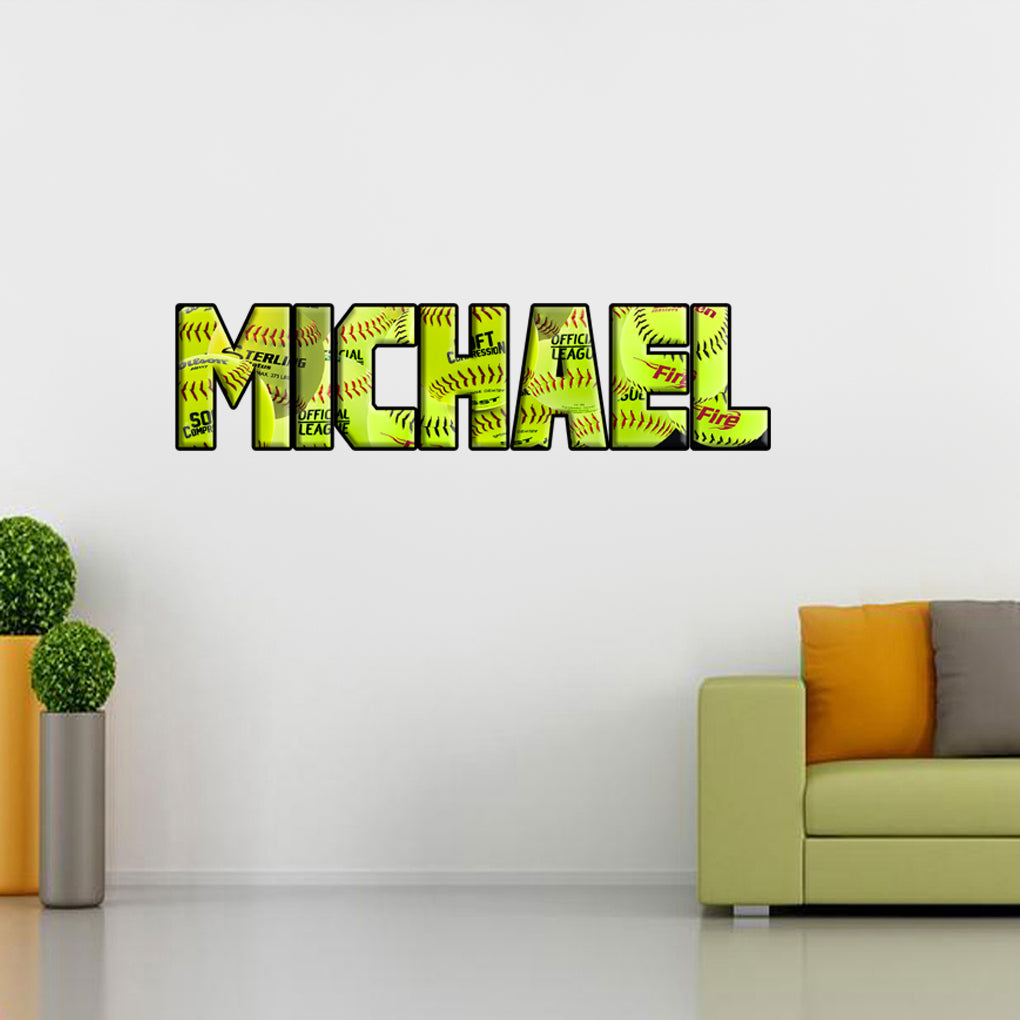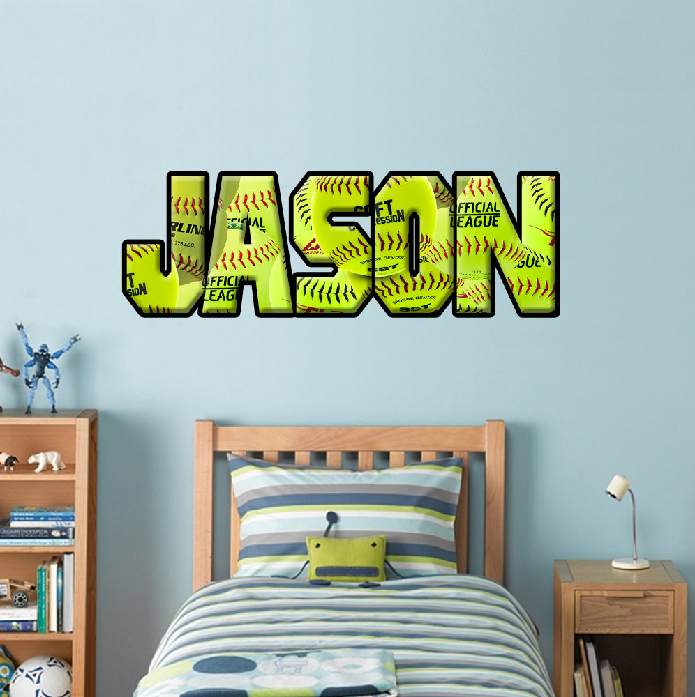 Kids Softballs Personalized Custom Name Wall Sticker Decal WP169