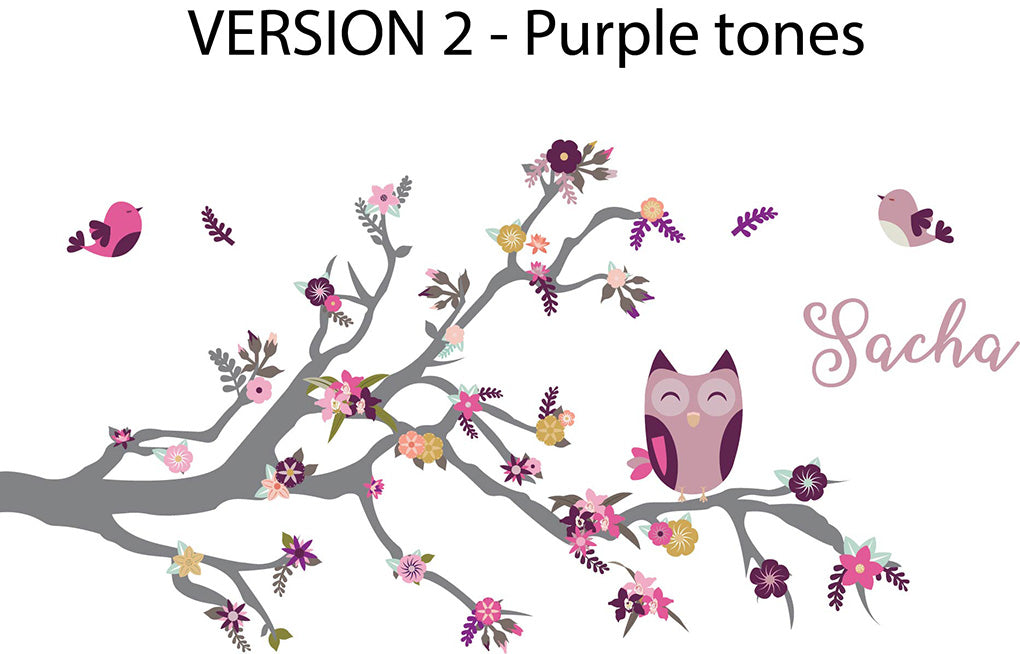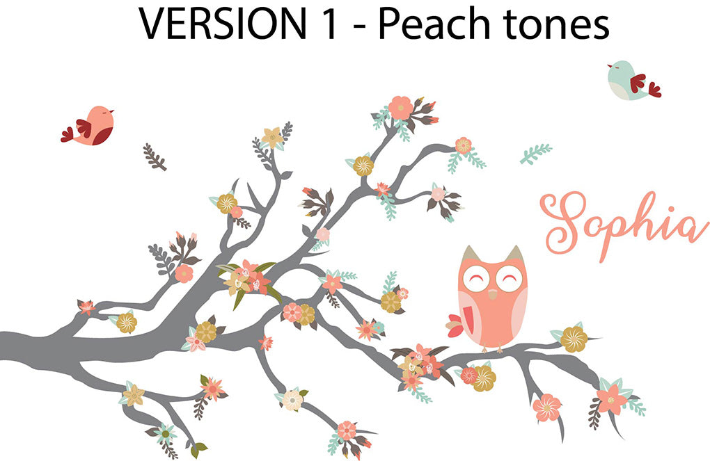 Kids Tree Branch and Owl Personalized Custom Name Wall Sticker Decal WC154