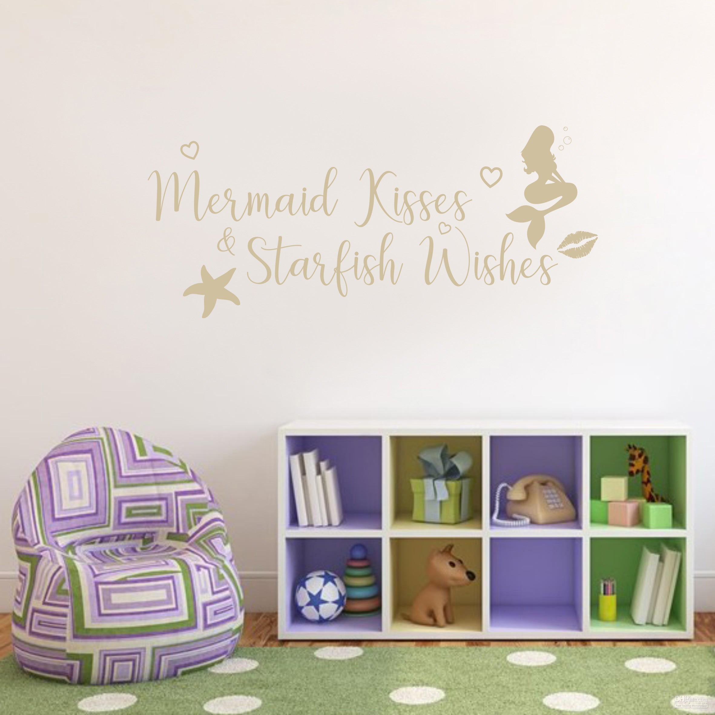 MERMAID KISSES STARFISH WISHES Inspirational Quotes Wall Sticker Decal SQ213
