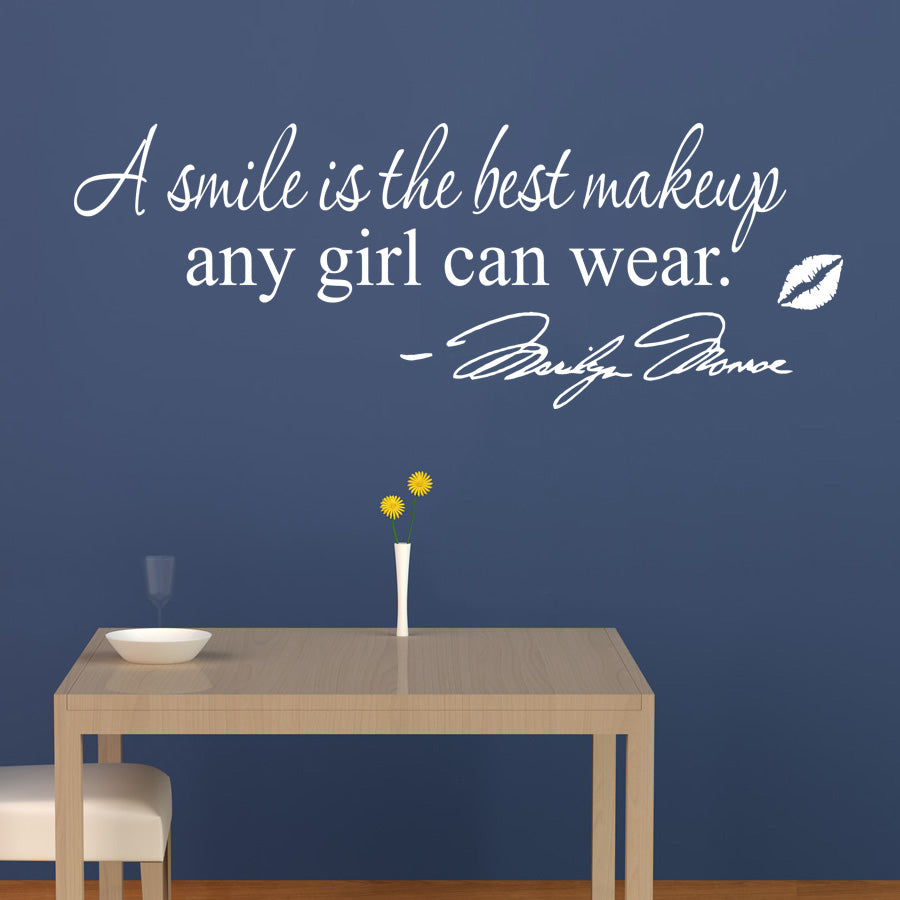 SMILE IS THE BEST MAKEUP Marilyn Monroe Inspirational Quotes Wall Sticker Decal SQ52