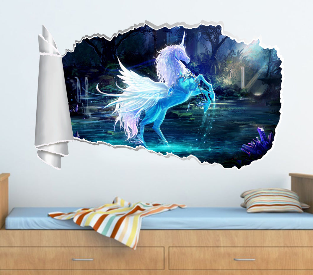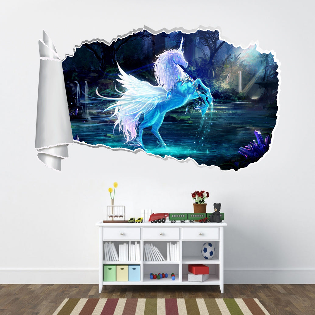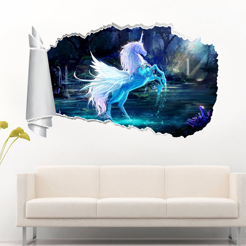 Unicorn Fantasy 3D Torn Paper Hole Ripped Effect Decal Wall Sticker