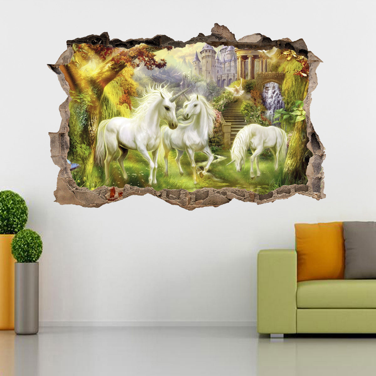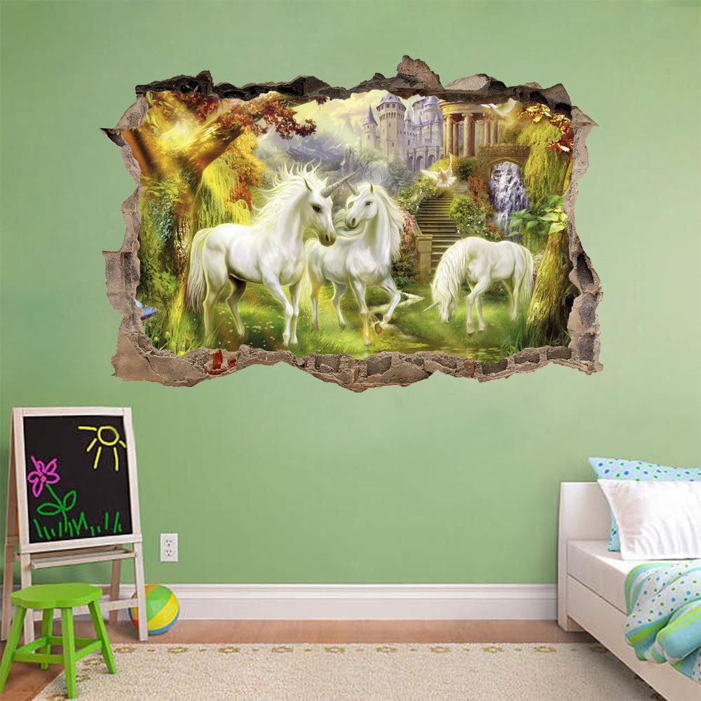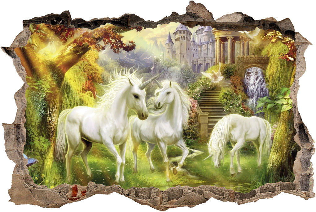 UNICORN GARDEN FANTASY 3D Smashed Broken Decal Wall Sticker