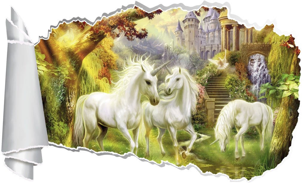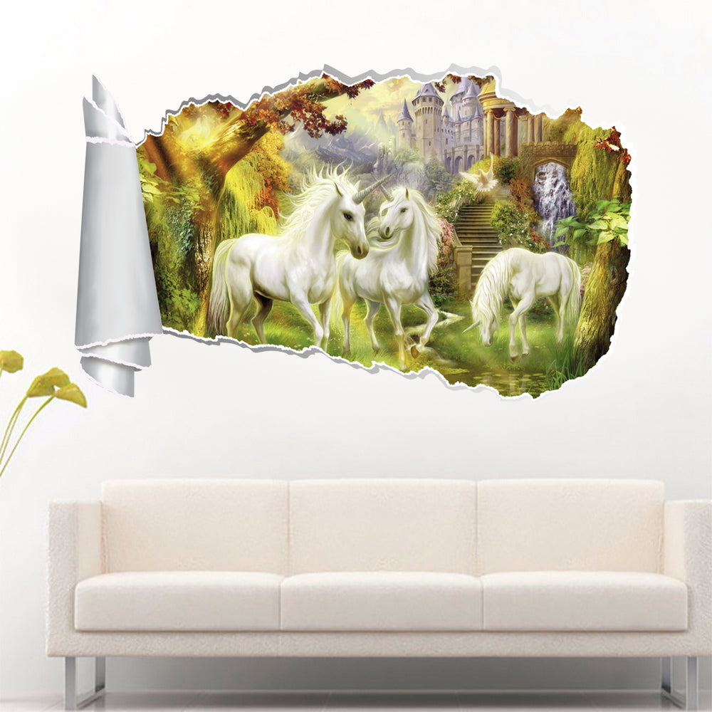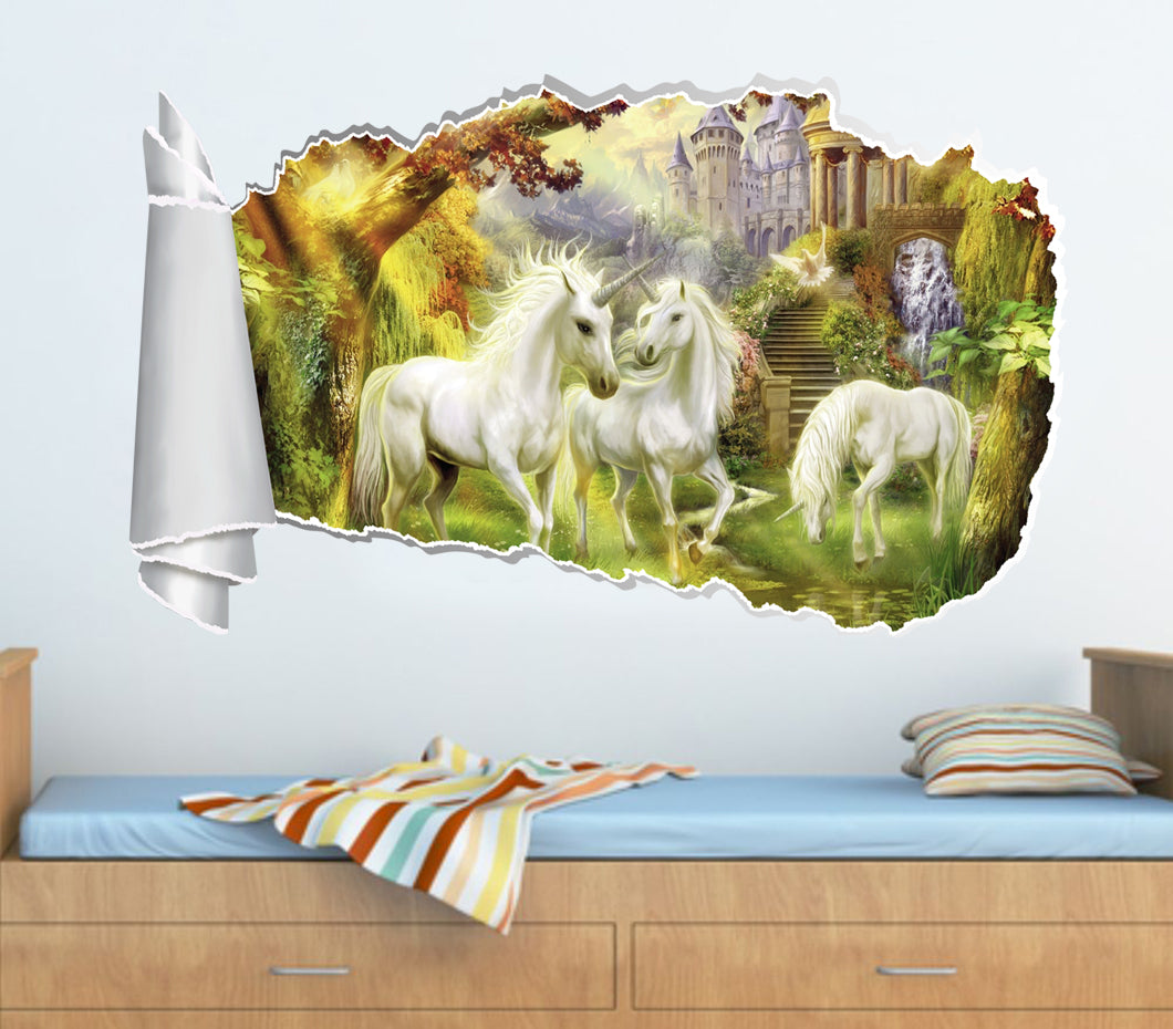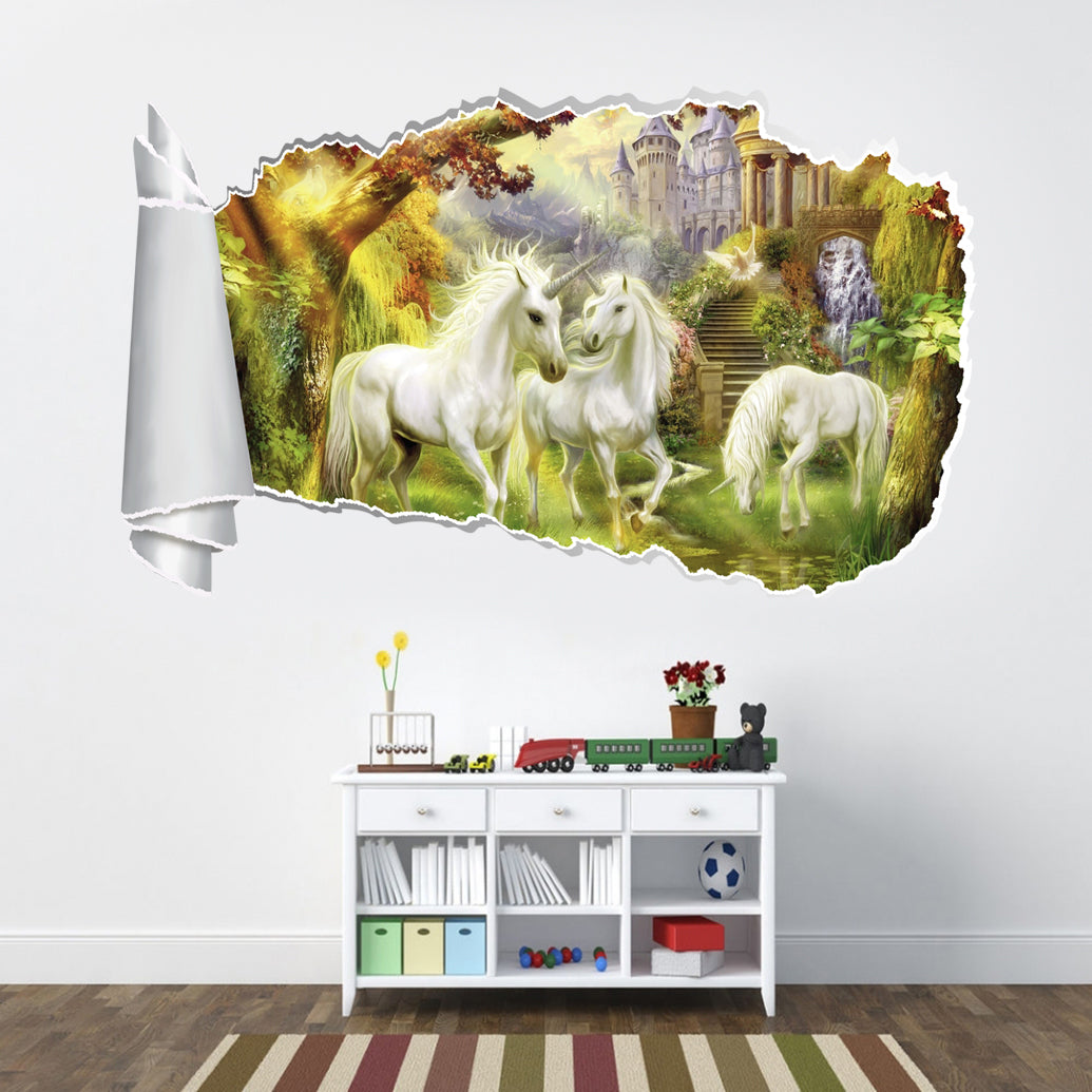 Unicorn Garden Fantasy 3D Torn Paper Hole Ripped Effect Decal Wall Sticker