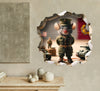 Mouse Soldier - Whimsical Mouse Hole Wall Decal Sticker - 3D Cute Home Decor Mural - Funny Military Mouse Design 77