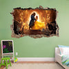 Beauty And The Beast Disney 3D Smashed Bricks Broken Wall Illusion Decal Wall Sticker J35