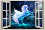 Autocollant mural de fenêtre 3D Licorne magique fantastique